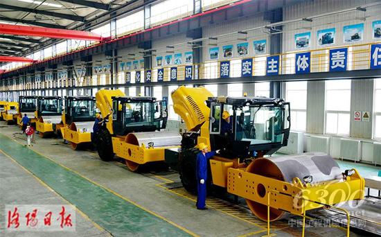 近日,在国机重工(洛阳)有限公司的压路机总装线上,一批出口东南亚的压路机正在装配中。