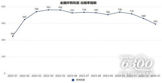 2024年1月升降工作平台租赁行业出租率指数