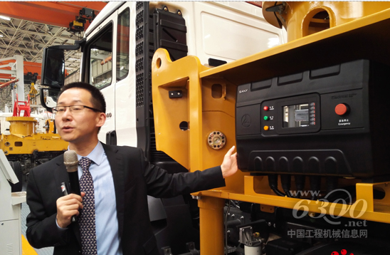 三一重工高级副总裁贺东东展示数字化终端设备 郑治摄