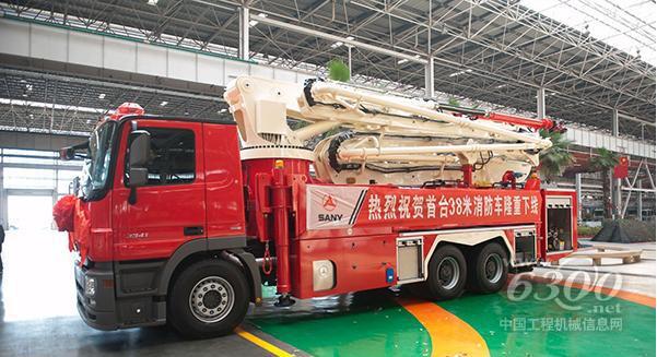三一重工38米消防车在长沙产业园18号厂房隆重下线