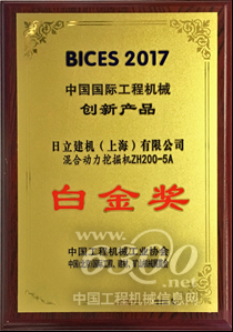 2018年4月11至14日,以“新时代、新理念、新作为”为主题,中国工程机械工业协会五届三次会员代表大会暨第十六届中国工程机械发展高层论坛在广西柳州举办。会上,政府及协会领导、行业代表、媒体记者共同聚焦热点领域、把脉行业发展,并为获得BICES 2017产品奖的企业颁发荣誉证书。凭借卓越的创新力与市场表现,日立建机ZH200-5A混合动力挖掘机和ZX200-5A液压挖掘机,分获BICES 2017中国国际工程机械创新产品白金奖和推荐产品白金奖。