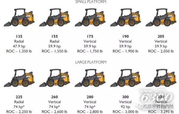 目前,JCB 滑移装载机共有轮式和履带式两大系列,17个型号。