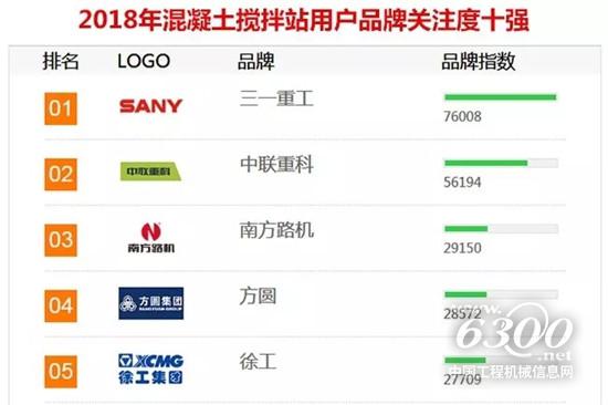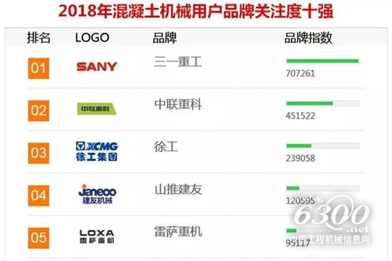 1月10日,“2018年中国工程机械用户品牌关注度排行榜”在京发布。三一重工凭借全国客户的高关注度,连续11年蝉联冠军。同时,在挖掘机械、混凝土机械、搅拌运输车、混凝土搅拌站的主要工程机械分榜单中,三一的品牌关注度排名行业第一。