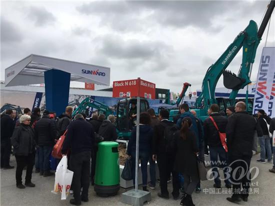 其中最为抢眼的是山河智能专门为欧洲市场研发设计、符合欧五排放标准的两款全新挖掘机——SWE155F和SWE215F。两款产品一经亮相,就吸引了现场无数关注的目光,瞬间成为全场焦点所在。除此之外,山河智能还展出了四款无尾机型和三款微挖机型,它们均外观靓丽、动力充沛,符合欧洲当地排放标准,在环保节能方面有着突出表现。