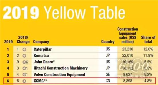 根据KHL披露的数据显示,2018年中国工程机械行业销售额同比增长37%,销售台量数为34万台。这是中国市场自2012年以来设备销量最高的年份,中国再次成为全球最大的建筑设备市场,这条脉络暗合中国装备制造产业的发展。伴随着增长,随之而来的则是中国企业在Yellow Table排行榜上市场份额的提升。作为持续领跑中国工程机械行业的徐工集团,保持了全球第六的高位,以“强者恒强”的逆势表现,始终保持着稳健的高质量发展步伐。