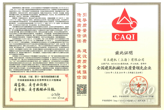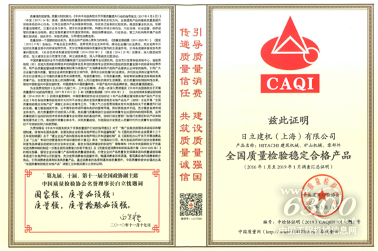 “质量第一,诚信至上”不仅是市场共识,也是每年“3.15产品和服务质量诚信承诺”宣传活动的宗旨。在2019年的荣誉簿上,日立建机(上海)有限公司(以下简称HCS)再次榜上有名,荣获中国质量检验协会颁发“全国产品和服务质量诚信示范企业”、“全国建筑机械行业质量领先企业”和“全国质量检验稳定合格产品”三大证书,连续多年以优质表现践行社会责任。