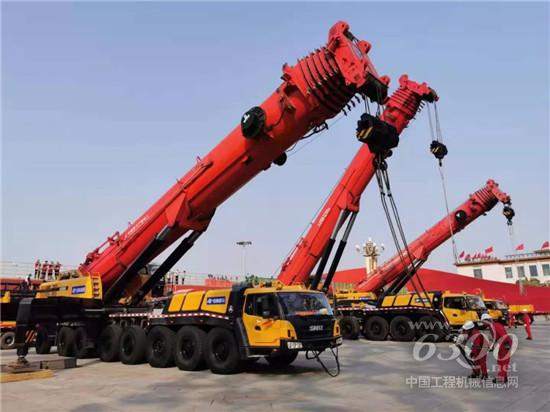 9月30日晚,7台三一SAC6000全路面起重机和14台三一重卡组成的红色车队,沿着前门西大街驶入了天安门广场,整齐排列在毛主席纪念堂的东西两侧。
