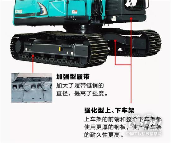 ●上下车架使用加厚钢板,提升耐久性;还加大了履带链销的直径,提高了强度。