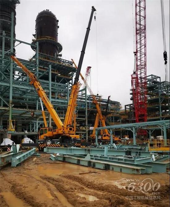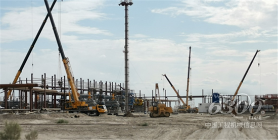 这是“一带一路”重要国家——乌兹别克斯坦当地一处正在建设中的液化天然气工厂,建设期间,该项目陆续采购了徐工多款新型起重机。