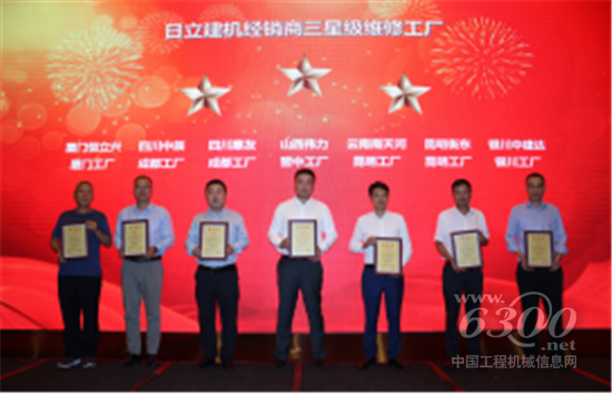 在经销商的众多服务内容中,部件大修、重建等设备维修能力是客户关注的主要方面,也是衡量经销商综合服务水平的关键。为此,日立建机(上海)有限公司(以下简称HCS)建立了统一的维修工厂评定标准,定期从5S、工具设备、工艺品质、流程管理、人员资格五大方面对其进行严格考核,并以星级评定的方式给予经销商资质认证。此次大会上,HCS向2020年度获得三星及以上等级的14家经销商颁发了证书,其中,内蒙古日强建筑机械有限公司的呼市维修工厂获评最高等级的五星级维修工厂。