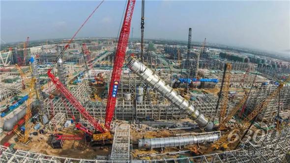 近日,广东揭阳,广东石化某项目现场,由三一重工研发制造的2000吨履带起重机SCC20000A,顺利完成了868吨的丙烯塔吊装。这是国产2000吨级履带起重机首次完成双臂工况作业。