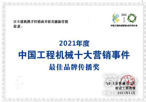 日立建机(上海)有限公司荣获“2021中国工程机械十大营销事件最佳品牌传播奖”