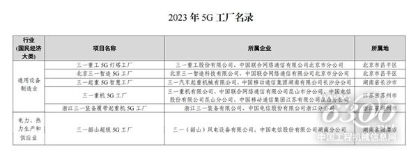 4.三一6个项目入选全国《2023年5G工厂名录》;