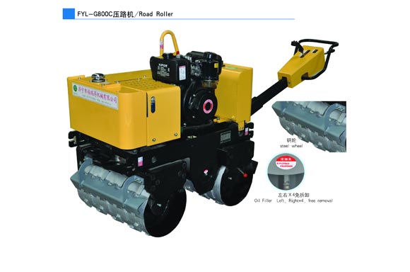 FYL-G800C手扶式压路机,双钢轮压路机,双驱双振压路机,柴油压路机 FYL-G800C压路机主要用于沟渠基础,道路,体育场地的压实整平,也可用于压实沥青表面的作业。 全液压手扶双轮压路机SYL-G800C=无缝钢轮+进口轴承(轴承决定寿命)+进口美国沙奥液压系统+进口换向手柄+双趋双震+加黄油的黄油孔+开普6.5马力柴油机 型号 SYL-800C 行走 功率 6.0hp/3600rpm 速度 0-4km/h(前进、后退) 油箱容积 20L 理论爬坡能力 30%润滑油量 0.6L 压实 燃油消耗量 313g/kWh 静线载荷 55N/cm尺寸规格 名义振幅 0.5mm 钢轮宽度 635mm 振动频率 70Hz钢轮直径 350mm 激振力 20KN包装尺寸1510x870x1920mm 水箱容积 26L 工作 驱动 变量柱塞泵液压马达PZS 振动 电磁离合 重量 发动机 净重量 780kg 型号 HONDA GX270 类型 柴油机,空冷4冲程,OHV,单缸 价格最低,当天发货 买的更放心,用的更省力 一切以合同为据,一切以客户来厂观察为实,正规厂家承诺绝对真实,假一赔十。欢迎客户来厂参观