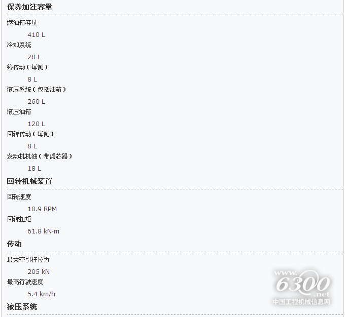 液压系统压力为 35000 kPa(5076 psi),两个液压泵的流量均为 202 L/min(53.36 gal/min),提升了挖掘性能和生产率。